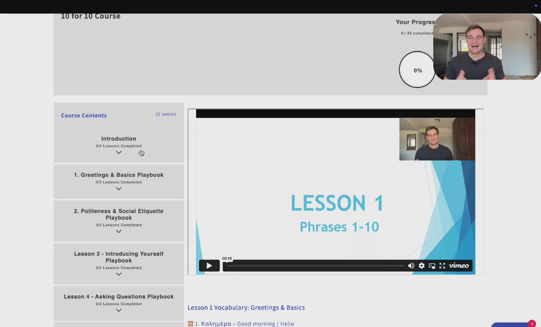Absolutely loving this basic Greek speaking course! Demetri is easy to understand and I love how he break down the meaning or words or phrases. I married into a Greek family and looking forward to putting my Greek skills to new use!